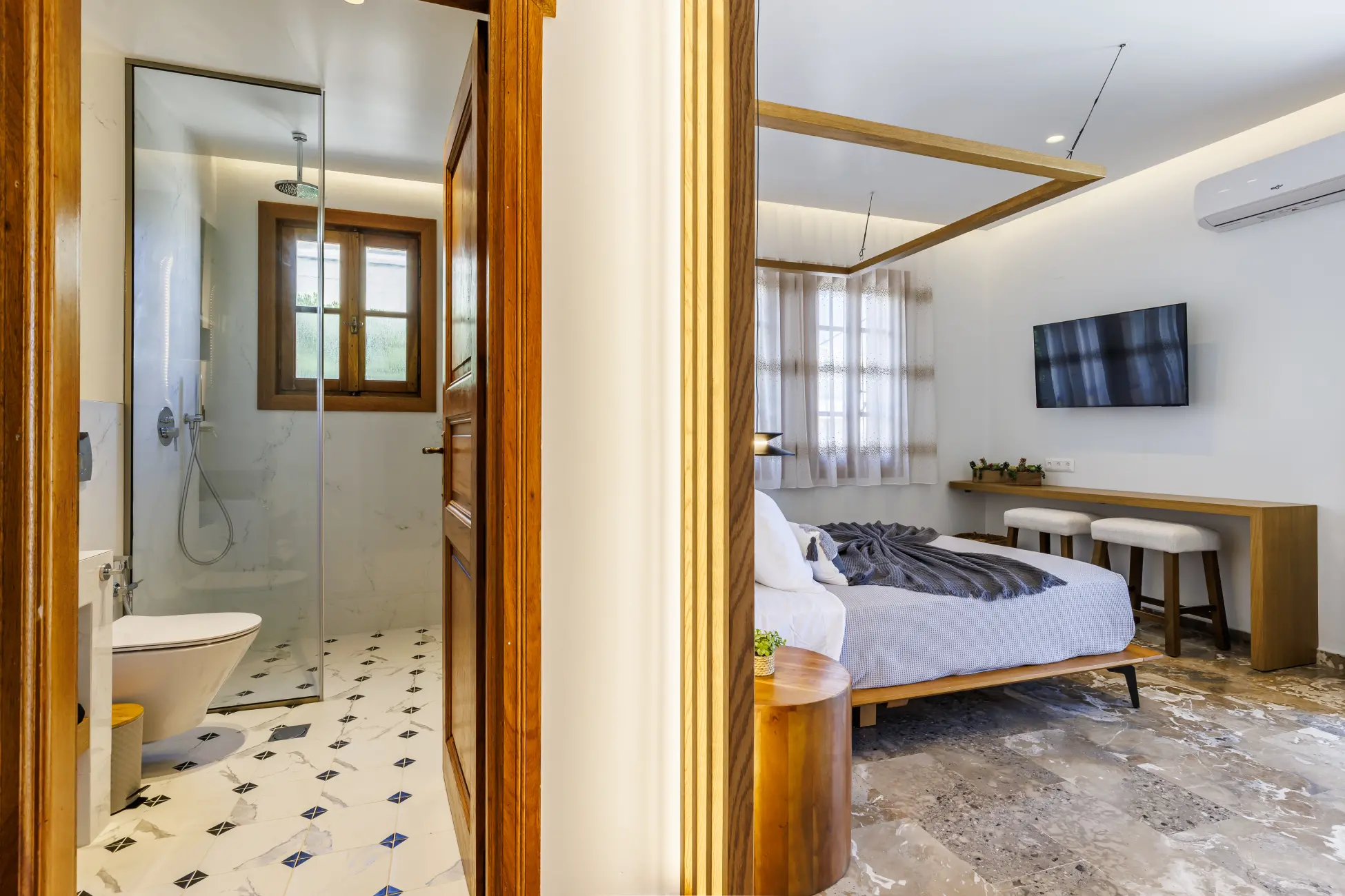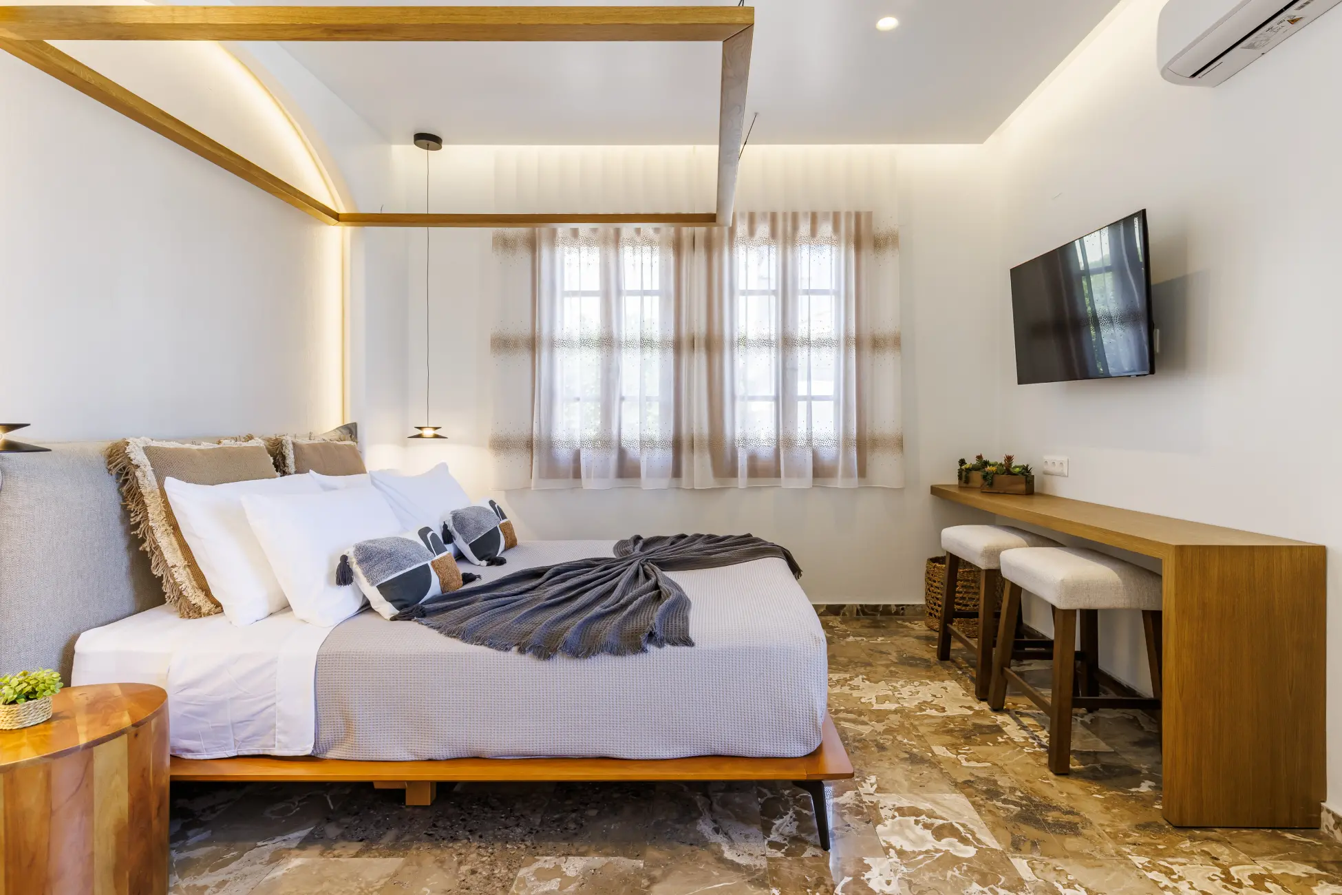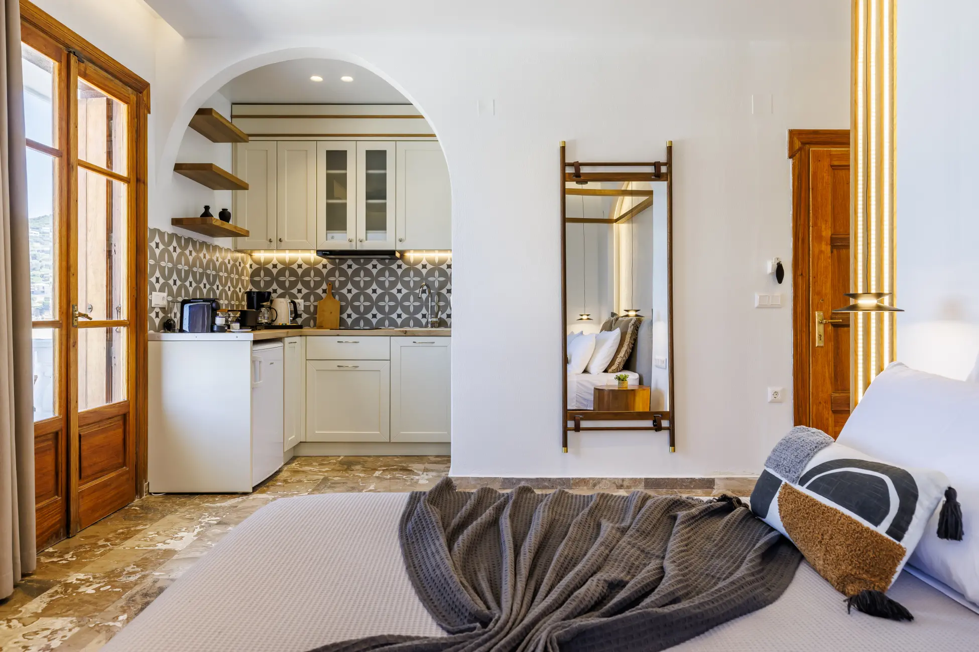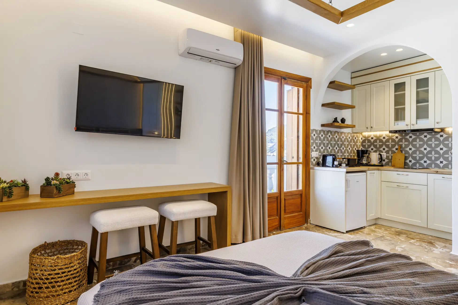 Our Deluxe studio encompass both breathtaking views of the sea, and a comfort like no other. As the sound of the waves gently lull you to sleep at night, you will not only feel refreshed, but also energized.