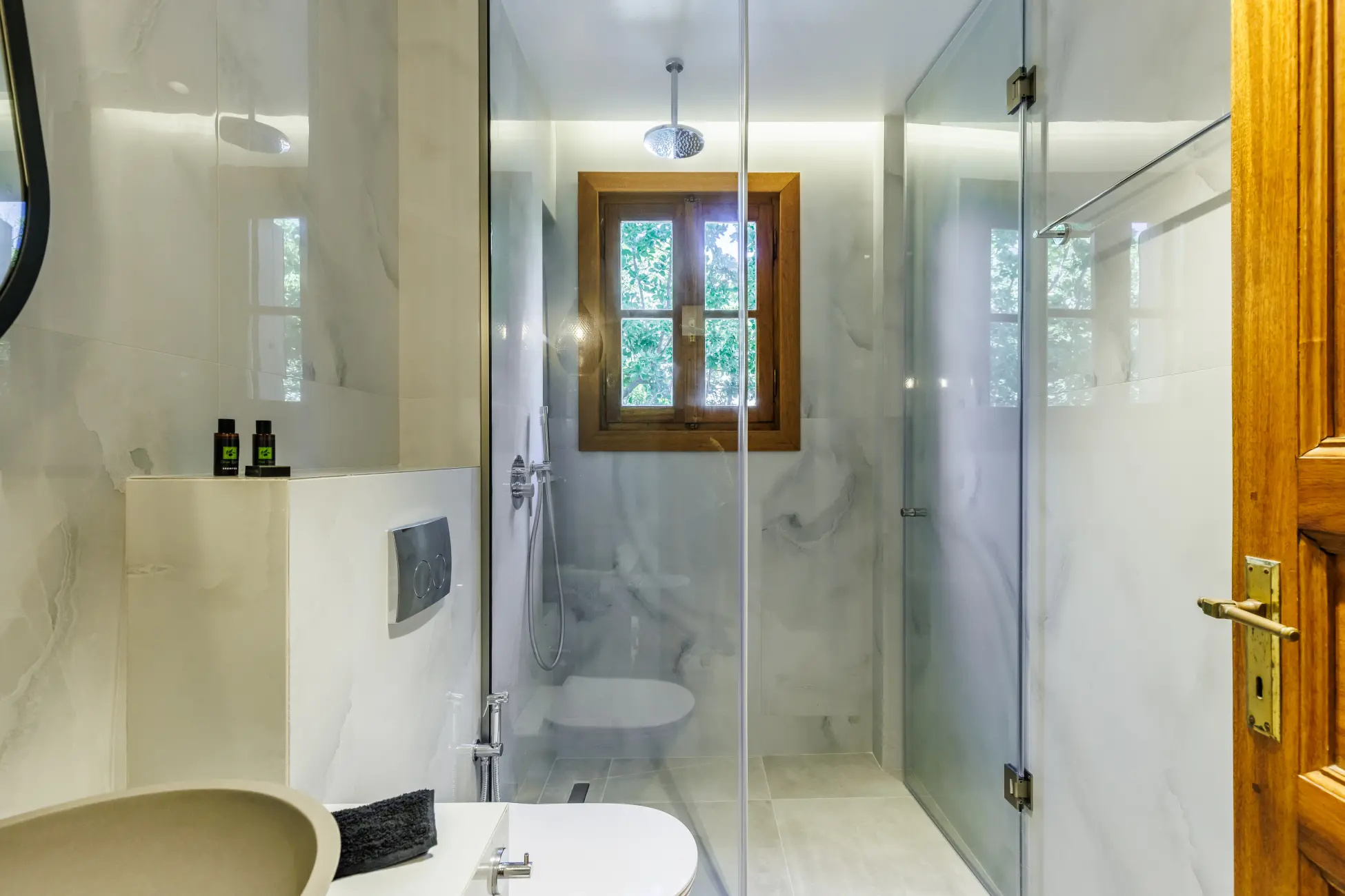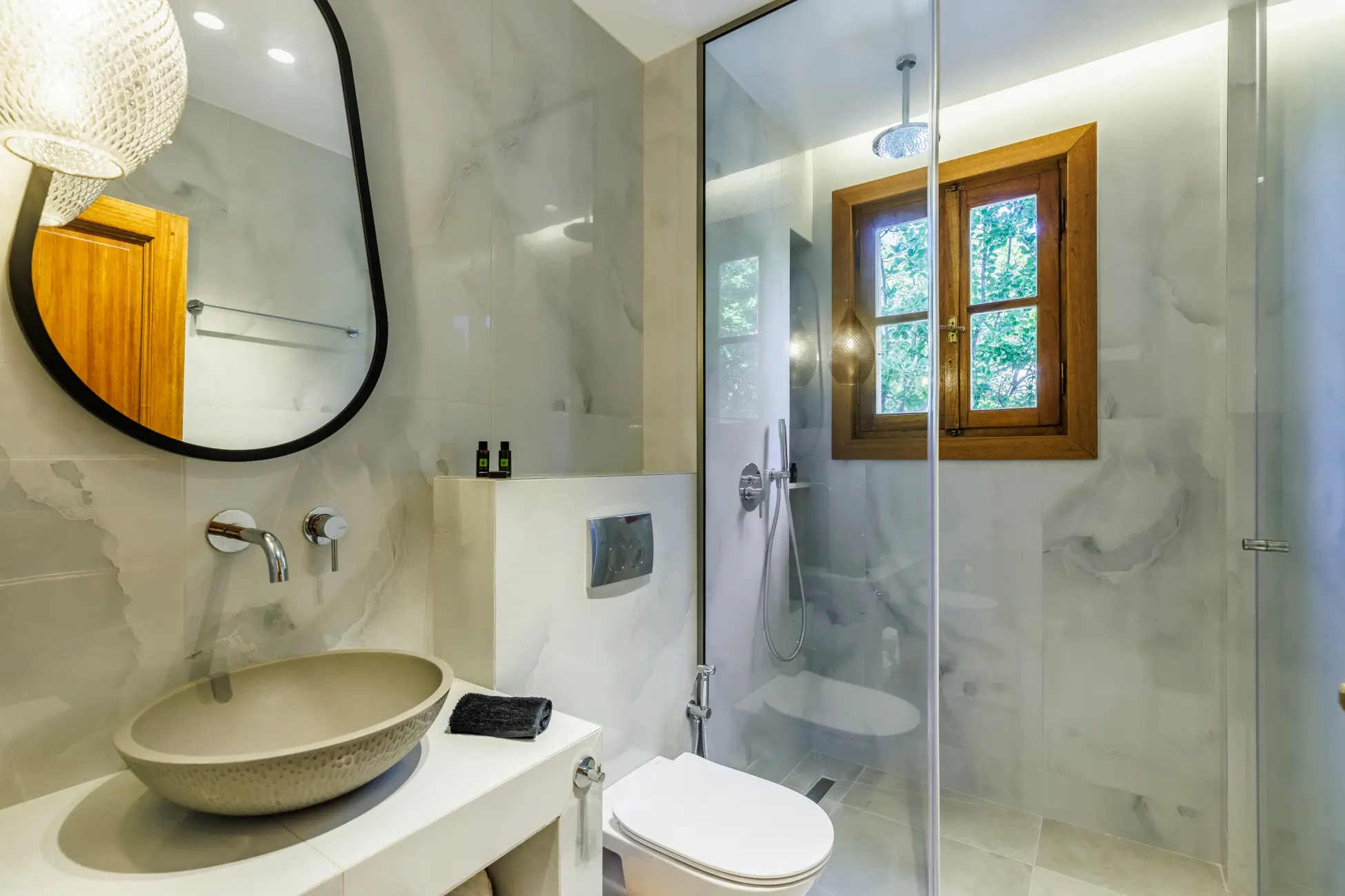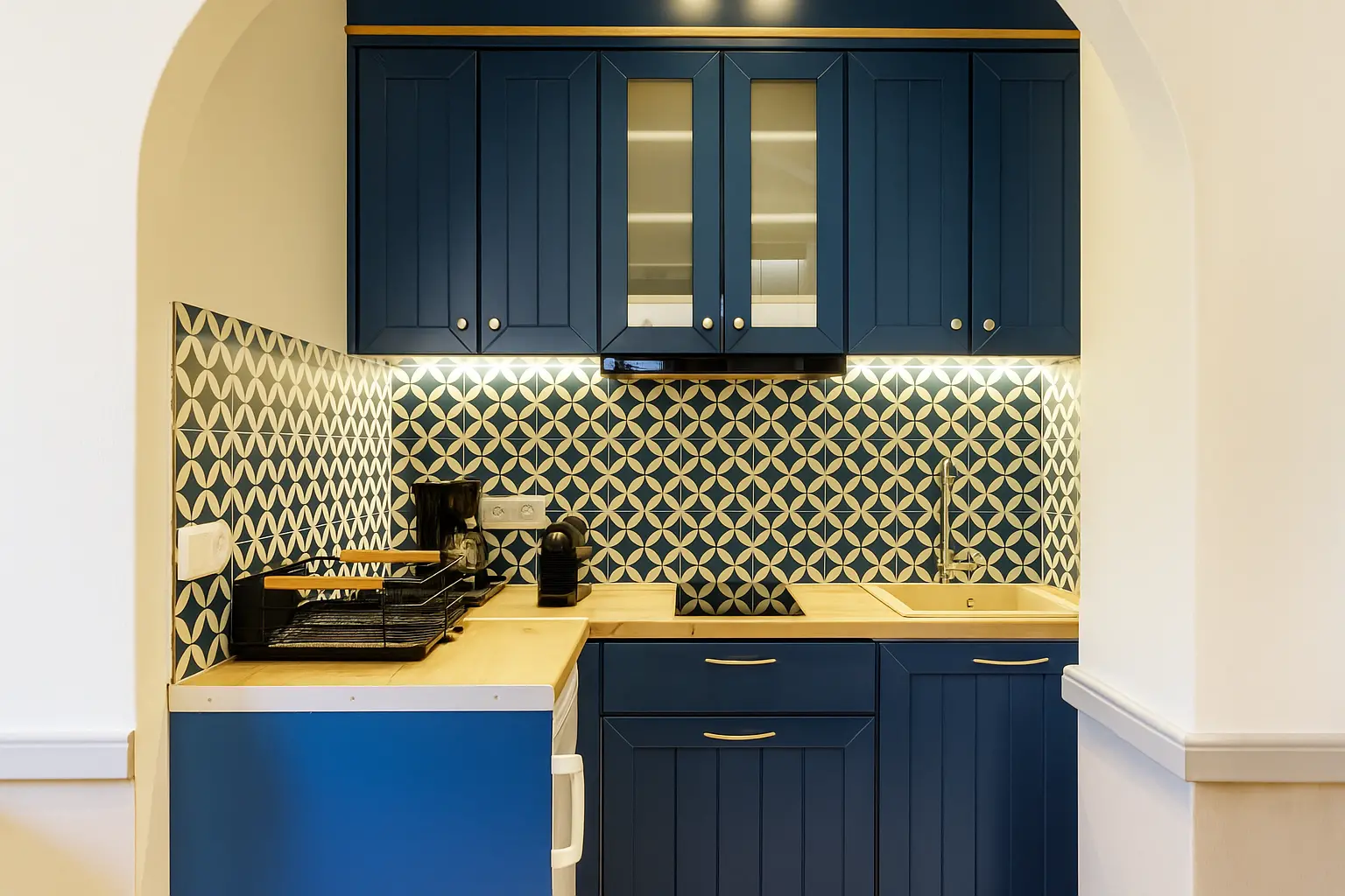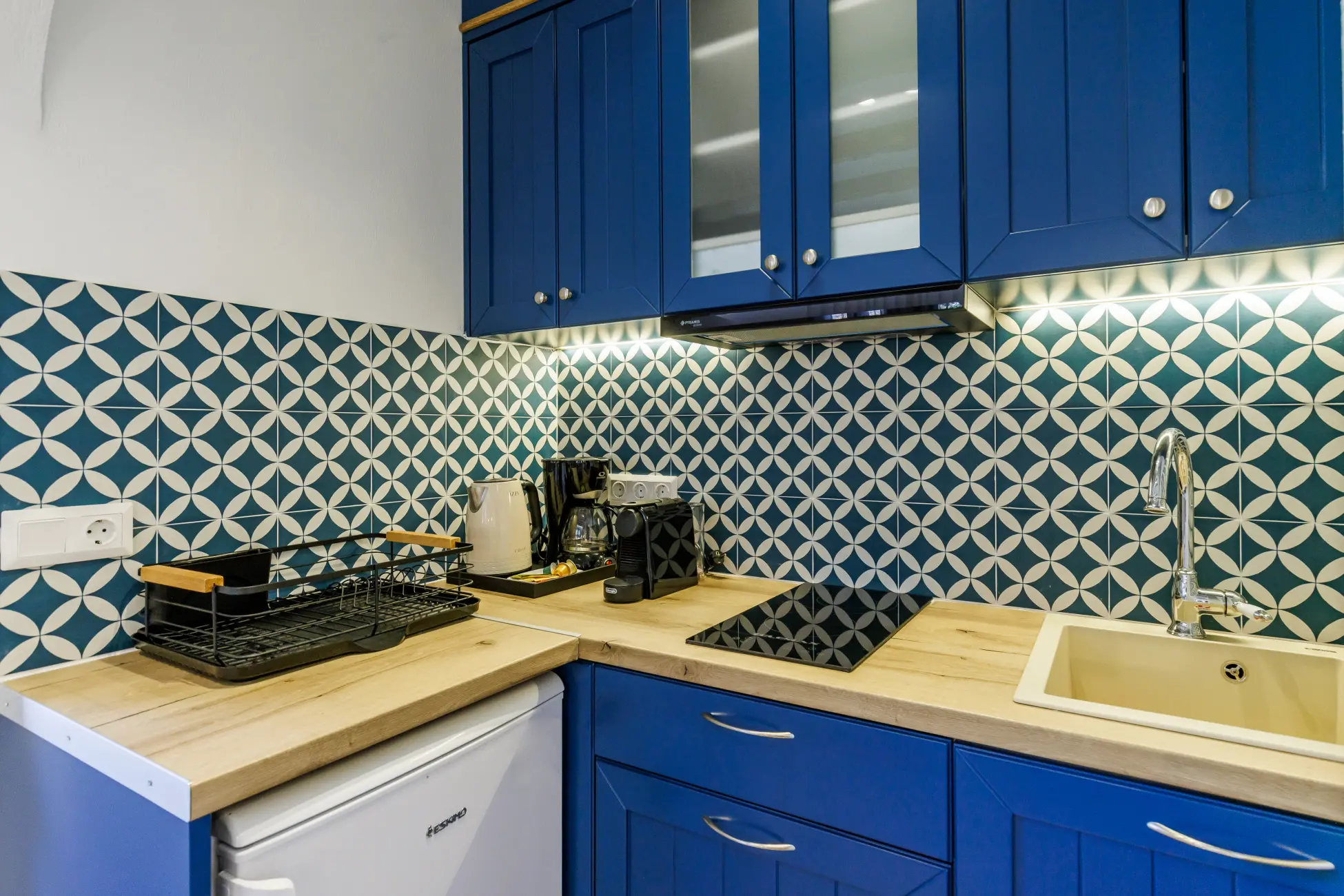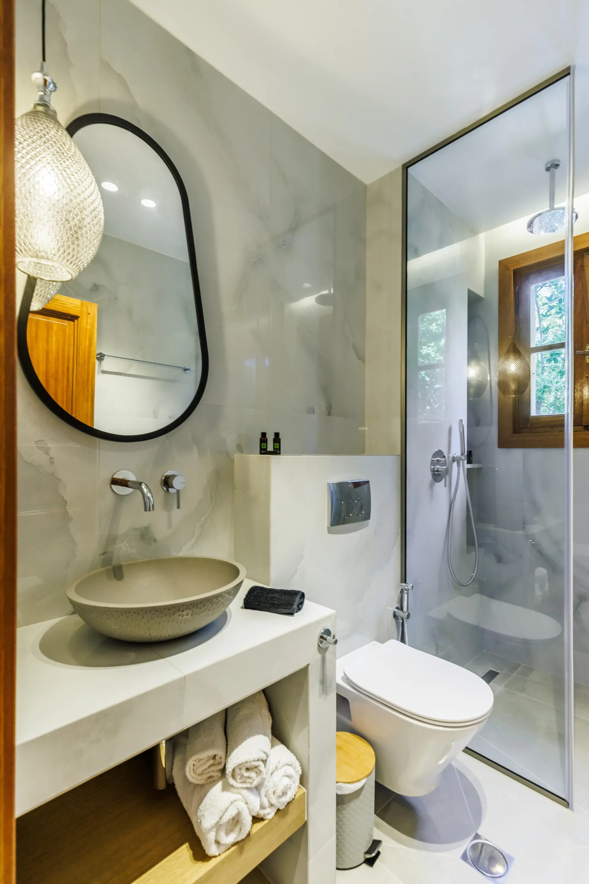 This larger studio is perfect for those who want a quiet escape. Peaceful during the day, for those afternoon naps, or just for those who want to sleep in. The soft breeze at night is so welcoming, and combined with the sound of the sea, it is a feeling like no other. This studio has a private view from the balcony.